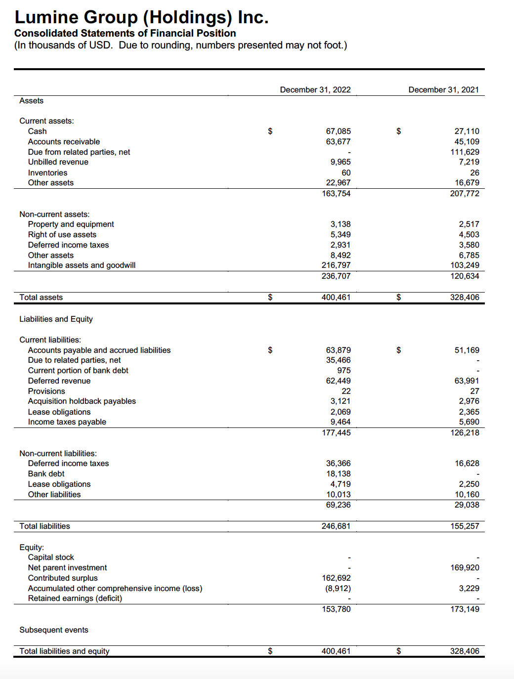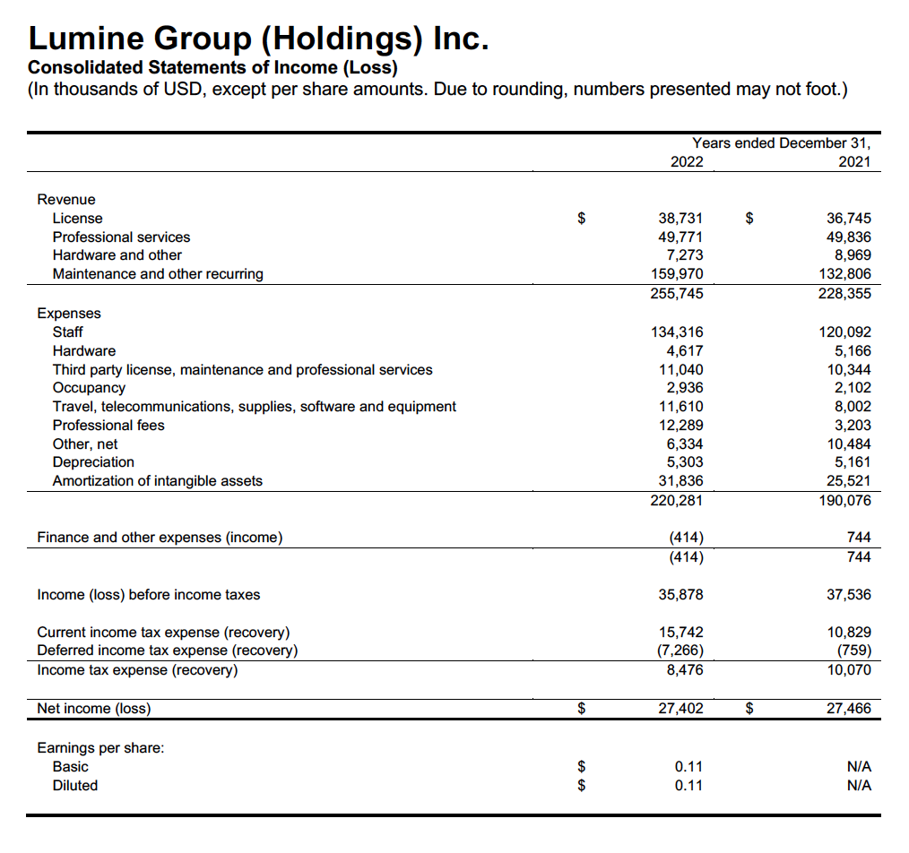 Constellation Software Inc. and Lumine Group Inc. Announce Results for Lumine Group (Holdings) Inc. for the Fourth Quarter and Year Ended December 31, 2022
