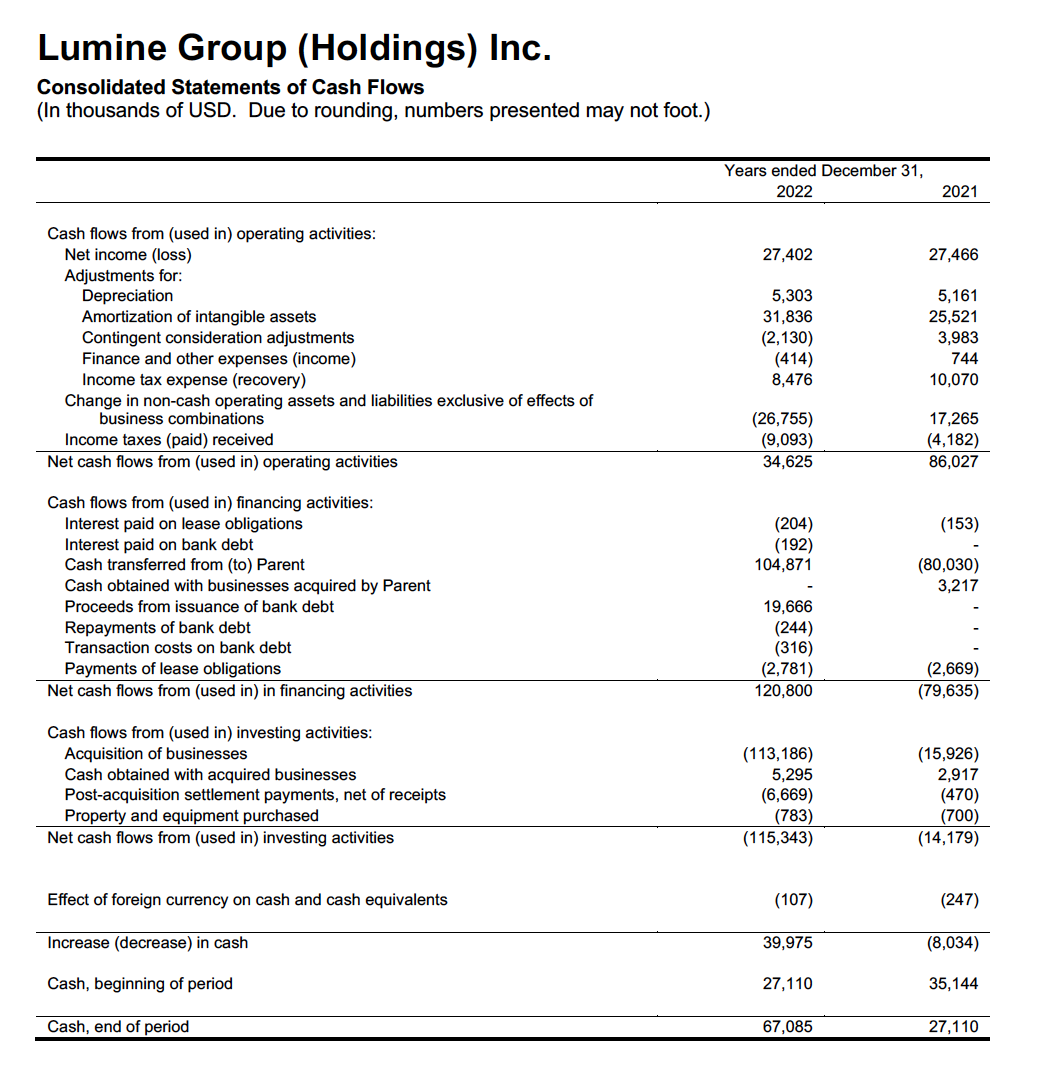 On March 8, 2023, Lumine Group acquired 100% of the outstanding shares of Titanium Software Holdings Inc (“Titanium”) for aggregate cash consideration of $31.4 million on closing plus cash holdbacks of $14.4 million and contingent consideration with an estimated acquisition date fair value of $4.1 million for total consideration of $49.9 million. Titanium is a software company catering to the communications and media market, which is a software business similar to existing businesses operated by Lumine Group. For this arrangement, which includes a maximum, or capped, contingent consideration amount, the contingent consideration is not expected to exceed $10.0 million. The cash holdbacks are payable over a two-year period and are adjusted, as necessary, for such items as working capital or net tangible asset assessments, as defined in the agreements, and claims under the respective representations and warranties of the purchase and sale agreements.