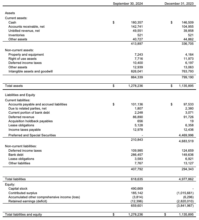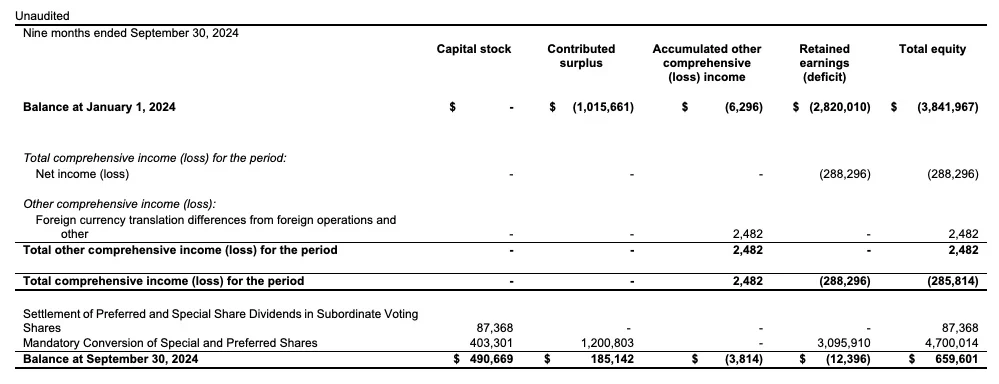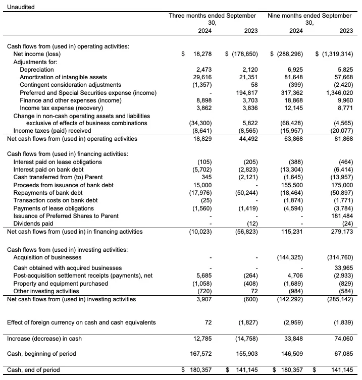• An expense of $317.4 million was incurred in the nine-month period ended September 30, 2024, up to the Mandatory Conversion Date, $298.7 million is related to the mark to market adjustments on the fair value of the Preferred and Special Securities and $18.7 million is related to the dividend payable. Fair value of the preferred and special securities is primarily dependent on the price movement of the Company’s Subordinate Voting Shares.