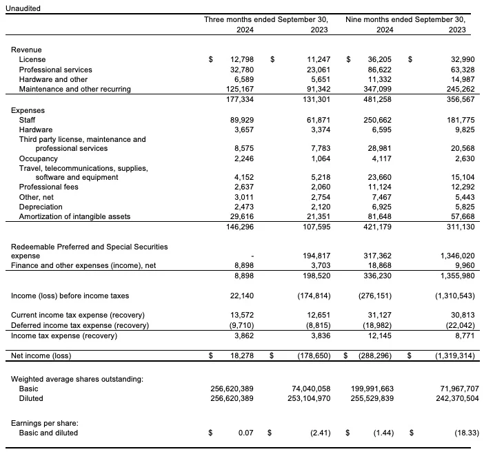 Lumine Group Inc. Announces Results for the Three and Nine Months Ended September 30, 2024