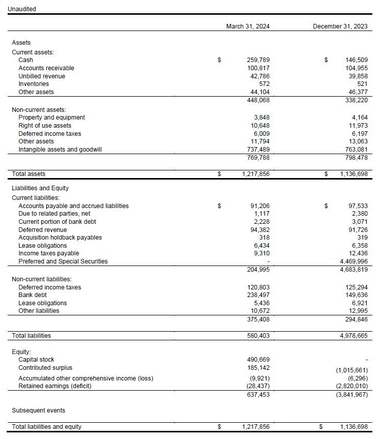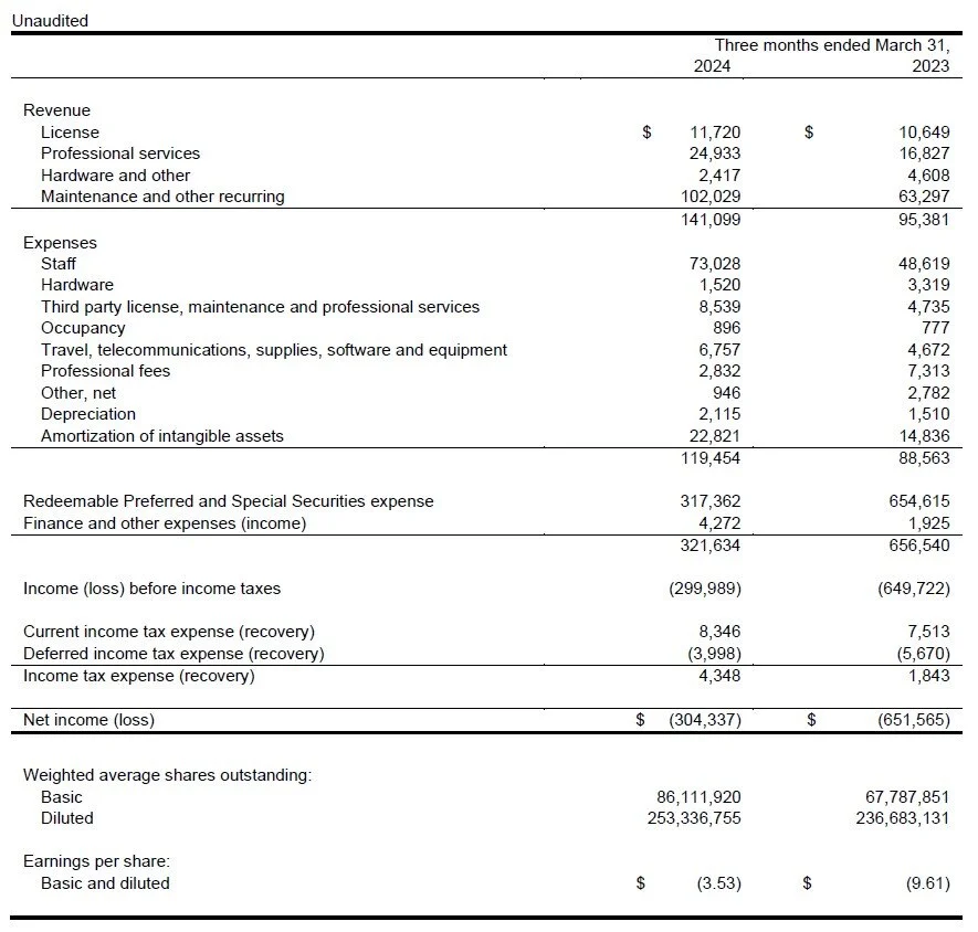 Lumine Group Inc. Announces Results for the Three Months Ended March 31, 2024